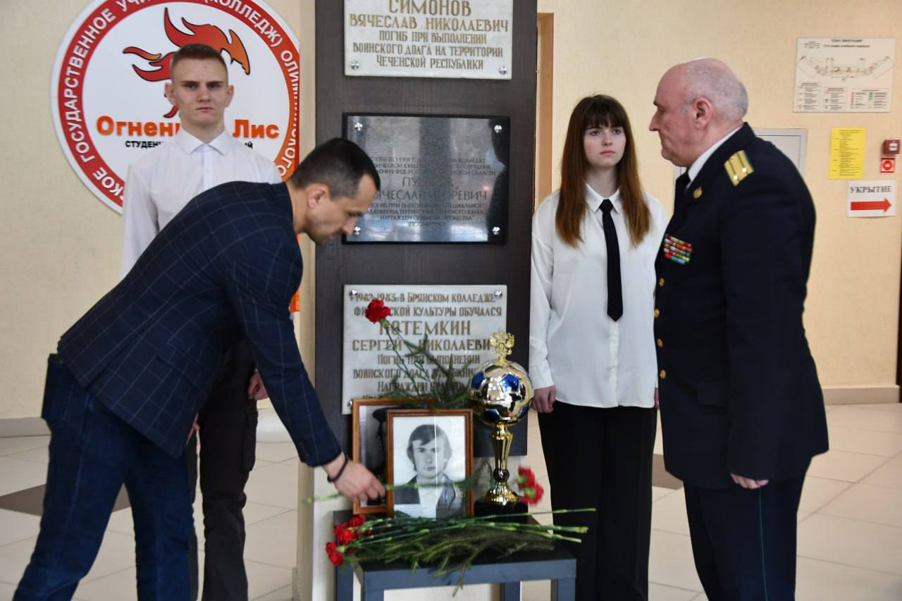 2 апреля в Брянском государственном училище (колледже) олимпийского резерва состоялась торжественная линейка, посвящённая выпускнику Брянского колледжа физической культуры Сергею Потёмкину, героически погибшему при исполнении воинского долга.