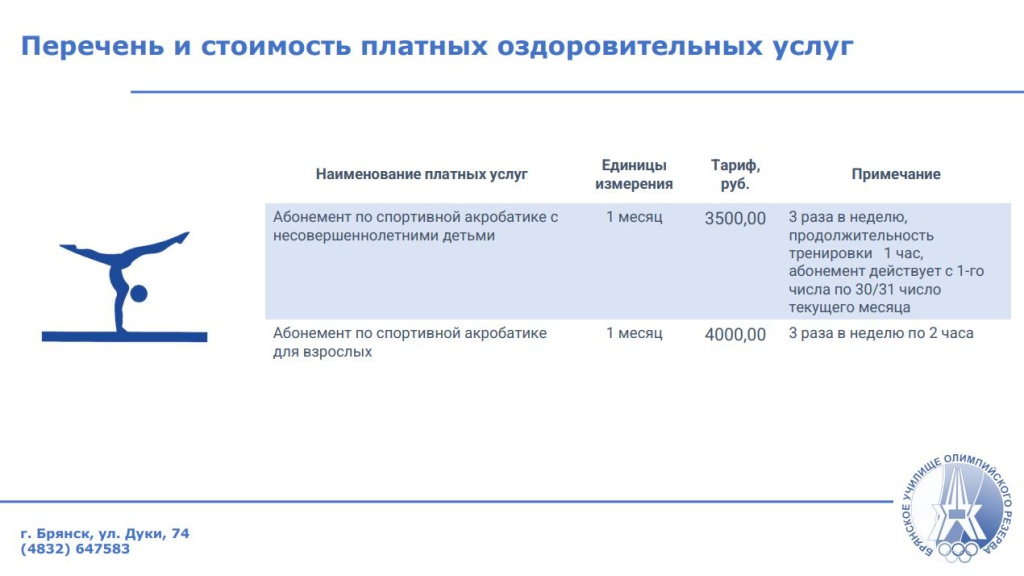 Платные оздоровительные услуги