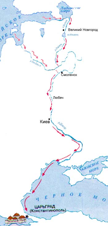 Начинался он из Варяжского (Балтийского) моря, проходил по рекам Среднерусской возвышенности (в основном по Днепру) и заканчивался в столице Византийской империи – Царьграде (Константинополе).