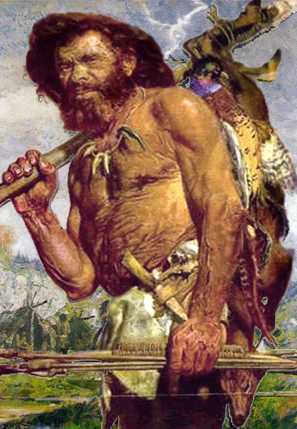 Как ни странно, но далеко не весть период нашего прошлого принято называть термином "история". На самом деле истории проедшествовал гораздо больший по продолжительности период, именуемый предыстория или "каменный век". На него приходится 99 % продолжительности всего прошлого человечества. Именно в это время идет процесс формирования всего вида homo. Весь период каменного века принято делить на стадии: ![]() Формирование человечества неспешно шло от одной стадии к другой. Самые древние останки человекоподобного существа были обнаружены в Африке. Их возраст около 6,5 млн. лет. Учёные назвали его оррорин (первобытный человек). Об этом виде информации очень мало. Окаменелые останки существа, возраст которого оценивают в 2,5 млн лет получили название австралопитек (australis -"южный" и petecus - "обезьяна"). Австралопитеки умели изготавливать орудия труда из камня. Представителей этого вида, останки которых были обнаружены в Олдовайском ущелье в Африке, отнесли к виду хабилисов («habeo» — «уметь, мочь»). И всё же австралопитеки – это еще не люди, а больше обезьяны. Около 1 миллиона лет назад появляются существа, имевшие переходную форму от обезьяны к человеку. Они получил название питекантропов (petecus - "обезьяна", antropus - "человек", то есть «обезьяночеловек»). Питекантроп обладал более высоким ростом, чем хабилисы, имел больший объем мозга, умел более искусно изготавливать орудия труда. В XIX в. в Германии, в долине Неандерталь, обнаружили останки существа, жившего около 300 тысяч лет назад. Его назвали «неандерталец». Он имел объём мозга, сравнимый с мозгом современного человека, покатый лоб, массивные надбровные дуги. Неандертальцы жили в пещерах. Наконец в 1868 году во Франции при раскопках в пещере Кро-Маньон были обнаружены останки существа, которое назвали «кроманьонец». Этот вид людей сформировался в Африке и перебрался в Европу примерно 40 тысяч лет назад. Кроманьонцы имели внешний облик, ничем не отличающийся от современного человека. Расселяясь по миру, люди современного вида вступали в контакты с неандертальцами и частично смешивались с ними. На последней стадии палеолита появился человек современного типа (homo sapiens). Представители этого вида умело создавали орудия труда, используя для этого дерево, кость и камень, строили жилища, приспособленных к разным климатическим условиям. Высокого уровня достигла духовная культура.
