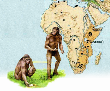 ИтогиСуществует множество теорий происхождения человека. Теория эволюции была сформулирована Чарльзом Дарвином. Человек прямоходящий появился около миллиона лет назад. Самые древние останки человекоподобного существа обнаружены в Африке. Первобытные стоянки человека найдены в Европе, Китае, на территории России: Костёнки, Сунгирь, Капова пещераи др.