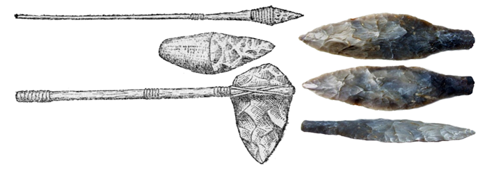 ![]() В эпоху мезолита у наших предков уже преобладают микролиты – миниатюрные и аккуратные орудия труда из тонких каменных пластин, которые вставляли в костяную или деревянную оправу. Тогда же были изобретены лук, стрелы и копьеметелка.