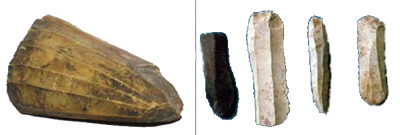 ![]() Появляется также техника ретуширования орудий (маленькие сколы по краям, придающие орудию удобную форму). Начинается изготовление специализированных орудий – это ножи, проколки, скребла, составные орудия, например каменные топоры.