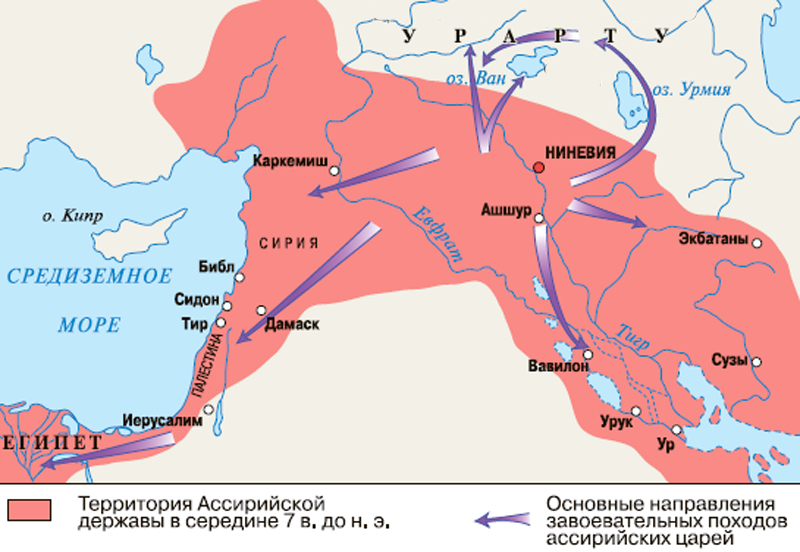 ИтогиАссирийцы освоили способ получения железа и делали из него орудия труда и оружие. У Ассирийского государства была сильнейшая армия, благодаря которой велись многочисленные успешные завоевательные походы. Царём Ашшурбанапалом была собрана уникальная библиотека, в которой на глиняных табличках хранились тексты по математике, астрономии, медицине.