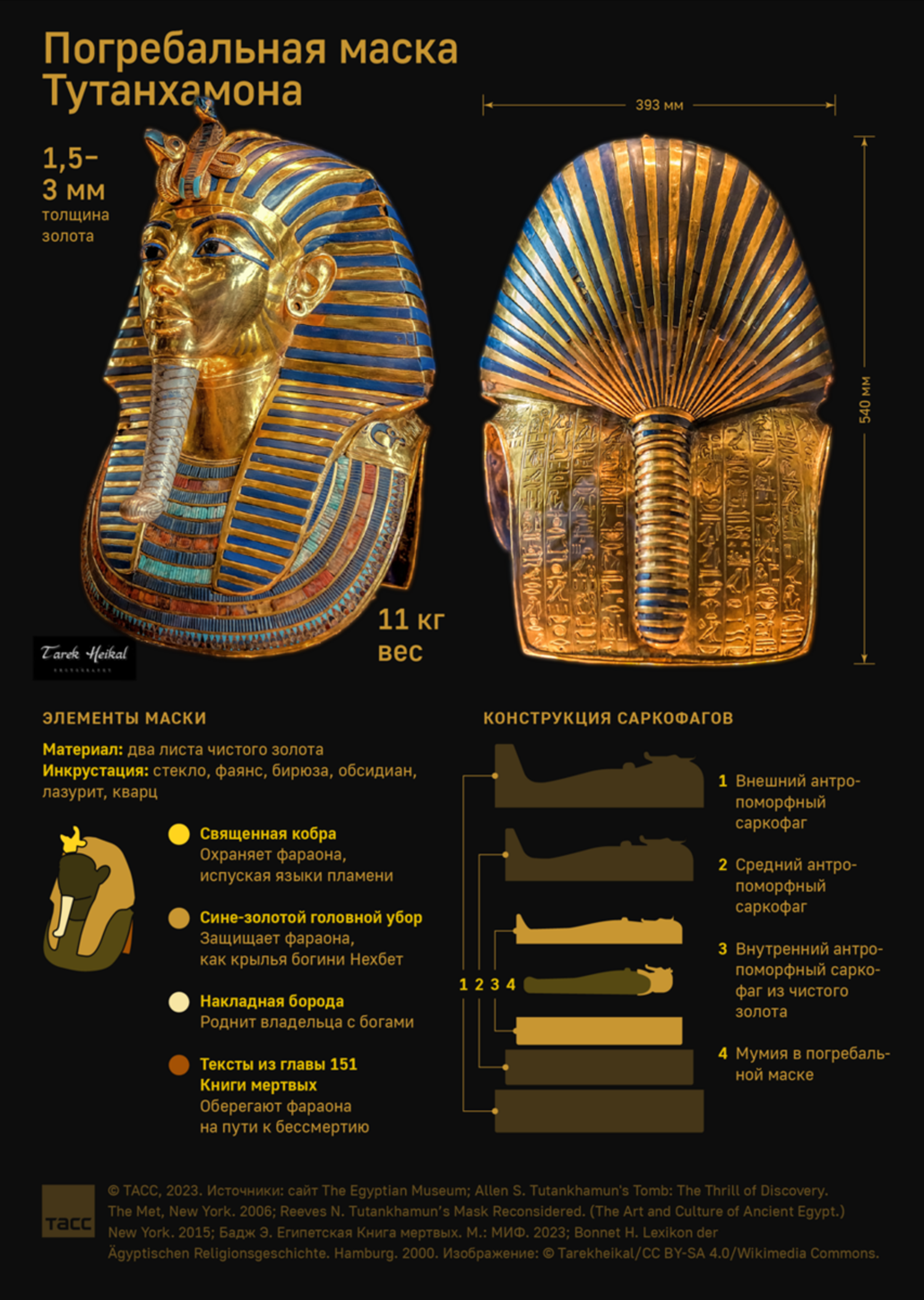 ![]() Бог Анубис приводил умершего на суд к Оси рису, где на весах взвешивали его сердце. Если в нём было больше добра, человек отправлялся в чудесные поля царства мёртвых. Если перевешивали плохие по ступки, свирепое чудовище Аммат разрывало умершего на мелкие части. Для ряда фараонов сооружали особые монументальные гробницы — пирамиды. Внутри пирамиды находилось помещение с саркофагом. Вместе с саркофагом в гробницу помещали вещи и предметы, которыми фараон пользовался при жизни: мебель, посуду, оружие, украшения. Стены гробниц украшали рельефами (выпуклыми изображениями на плоскости) и надписями, которые рассказывали о жизни богов и фараонов. Гробницы фараонов часто разграблялись разбойниками, поэтому важно было сделать захоронение так, что бы до него не смогли добраться расхитители. Наиболее известное из найденных и не разграбленных захоронений - гробница фараона по имени Тутанхамон (была открыта археологом Картером в 1923 г.).