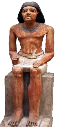 Древние египтяне владели приёмами обработки дерева, глины, камня, металла. Из них они создавали произведения искусства. ![]() Скульптуры в Древнем Египте выполняли по определённым правилам: мужчин изображали с цветом кожи более тёмным, чем у женщин. Руки сидящего человека лежали на коленях. В руке скульптуры присутствовал символ профессии изображённого человека — оружие, свиток, посох, корзина. Фараонов изображали намного крупнее, чем других людей, и с символами власти.