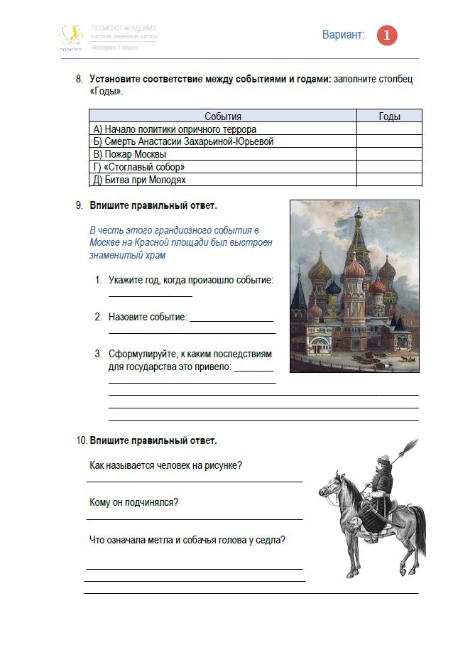 Раздел: "Россия в XVI веке: правление Ивана Грозного"