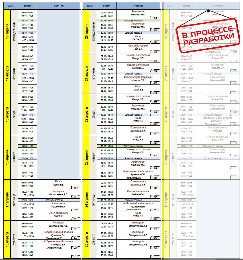 ГРАФИК УЧЕБНОГО ПРОЦЕССА