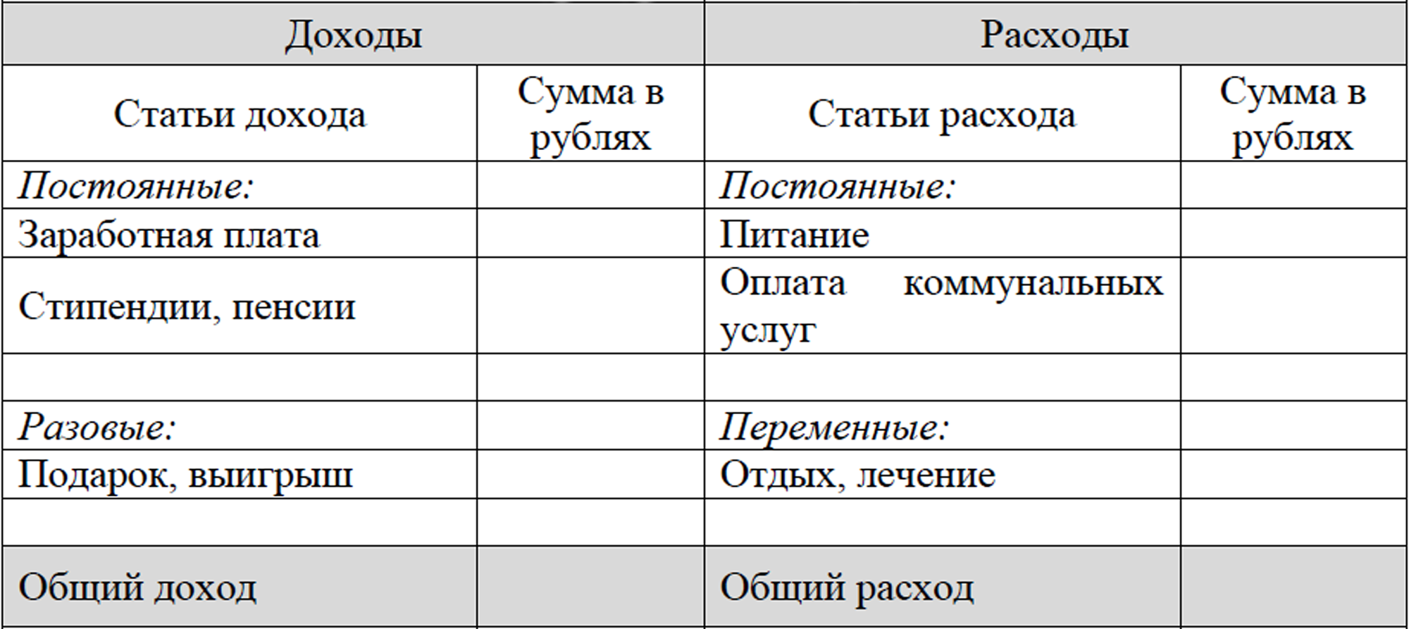 Вопросы для самоконтроля: 1. Дайте развёрнутое определение понятиям доходы и расходы.