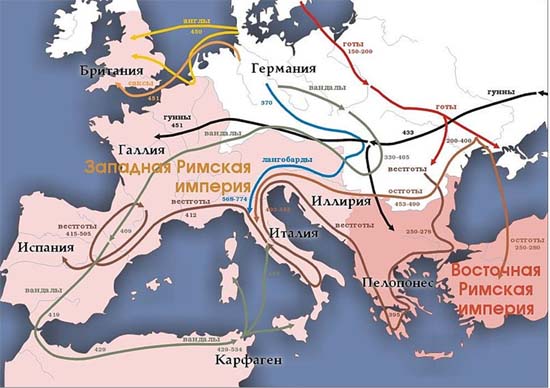 Рис. 3 Великое переселение народов (схема)