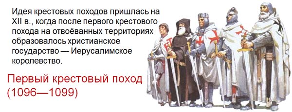 Расцвет идеи крестовых походов пришелся на XII век, когда после Первого крестового похода на отвоеванных территориях образовалось христианское госу-дарство — Иерусалимское королевство.