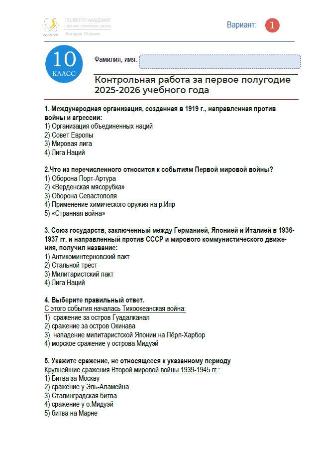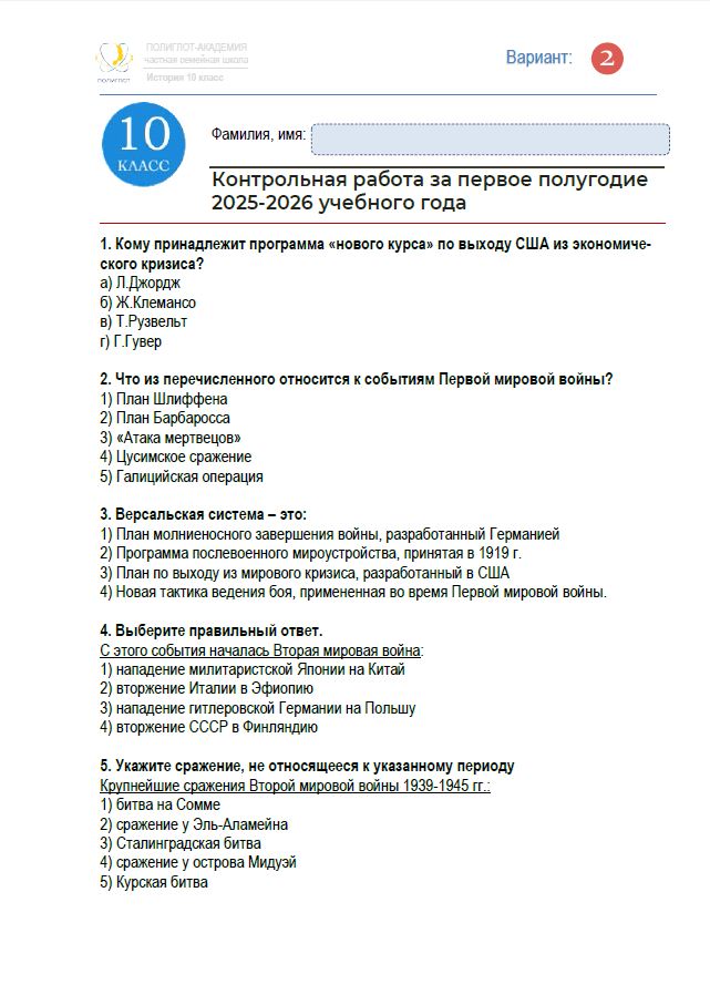 Раздел: Контрольная работа за первое полугодие 2025-2026 уч. года