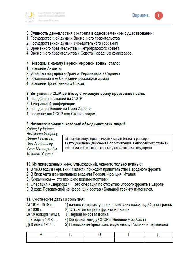 Раздел 4. Россия в годы Первой Мировой войны и Великой российской ре-волюции 1914-1922 гг.