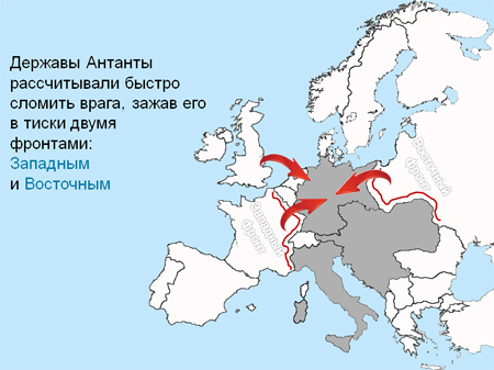 Индустриальное общество подталкивало людей к сплочению по национальному признаку. Так в странах Европы постепенно зарождается национализм. Национализм перерастал в шовинизм — стремление решить проблемы своей нации за счёт других. В XX веке по миру продолжает распространяться расизм - представление о превосходстве одной расы над другими. В начале ХХ в. противоречия между сильнейшими странами мира нарастали. Германия, Австро-Венгрия и Италия ощущали себя несправедливо "обойденными" в вопросах колониальных владений в отличие, например, от Великобритании и Франции. Страны активно готовились к войне, наращивая военное производство. Усиливались влияние военных и монополий, осуществлявших военное производство, и воинственные настроения — усиливается милитаризм. Против войны выступало движение пацифистов, в котором активно участвовали социалисты. ![]() К 1914 г. в Европе сложились два враждебных военно-политических блока: Антанта (Россия, Франция, Великобритания) и Тройственный союз (Германия, Австро-Венгрия, Италия). Наиболее острыми в конце XIX — начале XX в. были противоречия между Великобританией и Францией, с одной стороны, и Германией — с другой. В тот же период Германия, Австро-Венгрия и Россия боролись за влияние на Балканском полуострове. Германия рассчитывала использовать проложенную ею железную дорогу через Балканы для экспансии на Ближний Восток, остававшийся ещё не поделённым между европейцами. Австро-Венгрия стремилась расширить свои балканские владения. Россия традиционно считалась защитницей славянских народов и надеялась занять Черноморские проливы, что должно было обеспечить безопасность юга страны.