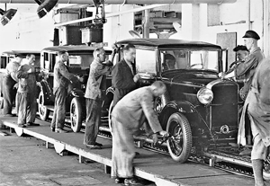 АВТОМАТИЗАЦИЯ ПРОИЗВОДСТВА ![]() Американский инженер Тейлор предложил повысить эффективность производства, максимально сузив функции отдельного работника. Весь процесс изготовления какого-либо изделия он разбил на отдельные простейшие стадии и операции. Внедрение такого метода позволяло сократить издержки на обучение рабочих и резко повышало производительность труда. Теорию Тейлора стал широко использовать на своих автомобильных заводах Генри Форд. Форд также решил не экономить на рабочих, а напротив, повысил им зарплаты, компенсируя этим однообразный и рутинный труд на конвейере. Рост продаж резко повысил прибыли Форда.