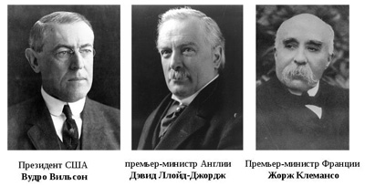 В январе 1919 г. представители стран Антанты (кроме России) собрались в Париже на мирную конференцию. Проигравшие обязаны были подчиниться решениям победителей. К участию в конференции не допустили побежденные страны и представителей России (под предлогом отсутствия в ней легитимного правительства). ![]() Конференцией руководили: Дэвид Ллойд Джордж - Премьер-министр Великобритании Американская и британская делегации выступали за создание Лиги Наций - союза независимых государств для урегулирования споров. Англичане и французы рассчитывали расширить свои колониальные владения. Союзник англичан, арабский принц Фейсал, надеялся добиться одобрения со стороны Антанты для создания арабского государства. Но страны Антанты не намеревались предоставлять арабам независимость. Другой союзник Антанты — Китай, участвовавший в войне, надеялся вернуть себе территории, которые ранее были захвачены Германией, а затем — Японией. Наиболее агрессивно в отношении Германии был настроен Клемансо. Франция была разорена войной. Единственным источником средств для восстановления страны могла быть контрибуция с Германии. К тому же Франция опасалась восстановления немецкой военной мощи. Поэтому Клемансо выступал за максимальное разоружение Германии. Ллойд Джордж был настроен более умеренно, так как Великобритания пострадала от войны меньше, чем Франция. Помимо этого, согласно принципам британской дипломатии, Германия должна была стать противовесом Франции. Вильсон требовал соблюдения выдвинутых им принципов самоопределения народов. После острых споров текст договора был согласован и в торжественной обстановке подписан в Версале. Германии ничего не оставалось, как принять продиктованные победителями условия.