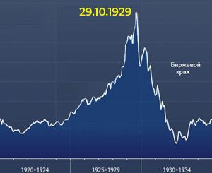 ![]() В середине 1929 г. мировая капиталистическая экономика казалась стабильной и процветающей. Но в октябре 1929 г. рухнул финансовый рынок США. ![]() За короткое время закрылось более 5 тыс. американских банков, полностью обесценились акции на 40 млрд долл., миллионы вкладчиков во всём мире потеряли свои деньги. Лишившись американских капиталовложений, экономика стран Запада стала разрушаться. Промышленное производство в США сократилось почти вдвое, а производство автомобилей — почти в 5 раз. Значительно уменьшилось производство и в других странах. Миллионы людей лишились работы. Начался величайший кризис мировой экономики, получивший название Великая депрессия. Великая депрессия была вызвана нерегулируемым развитием мирового рынка. Оказалось, что мировой рынок развивается слишком хаотично. Разразился тяжелейший в истории человечества кризис перепроизводства. Мировой рынок сбыта был насыщен товарами. Покупательная способность населения, особенно вне Европы и США, росла очень медленно, людям не требовалось столько товаров, сколько производилось «мировой фабрикой» стран Запада. Разрыв между размерами производства и возможностями потребления привёл к острому экономическому кризису. В 1933 г. биржевая активность в США полностью замерла, банки не работали, производители не знали, где брать капиталы для развития и куда сбывать продукцию. Люди, потерявшие работу, не могли больше покупать товары. Образовался замкнутый круг.
