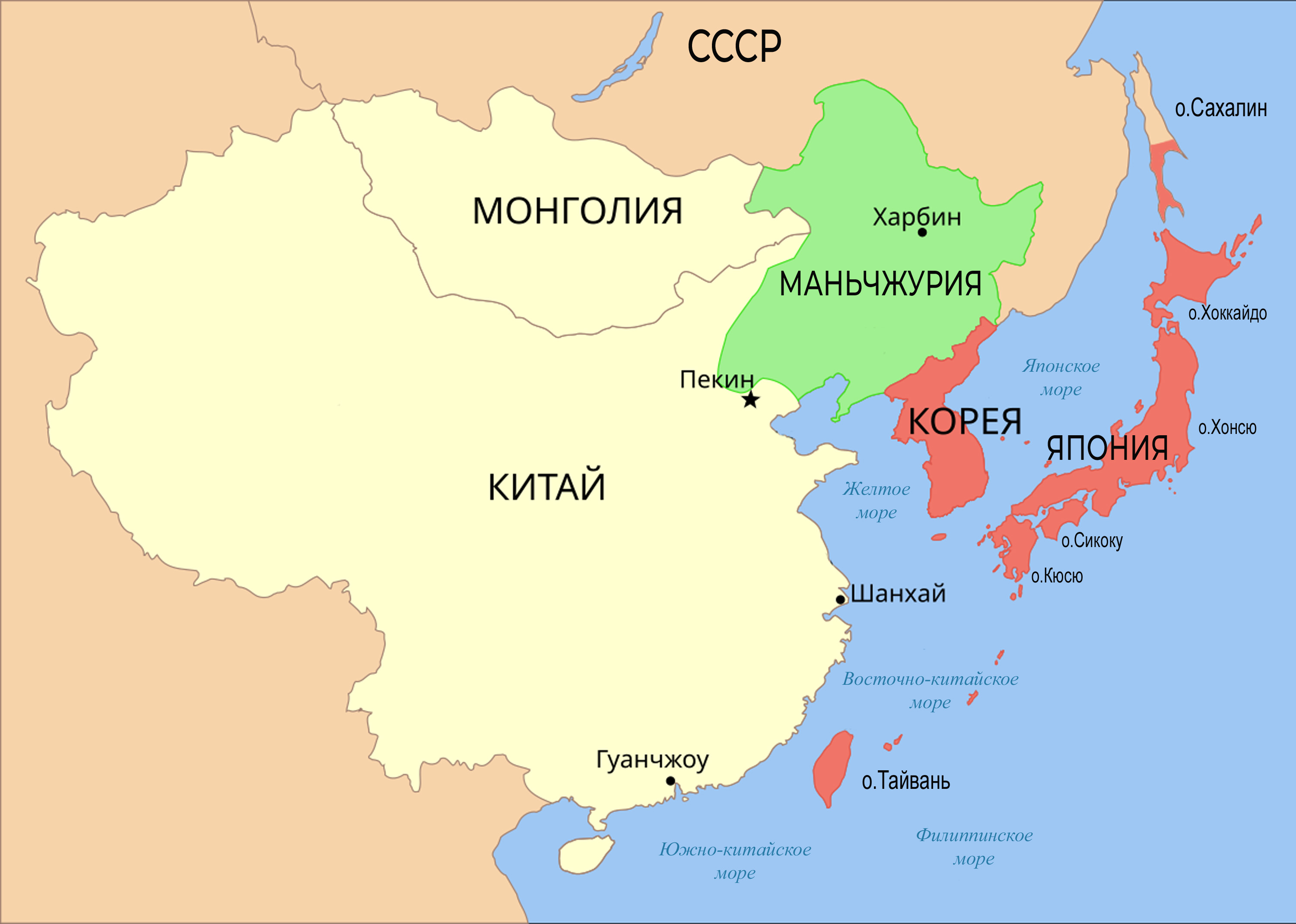 В начале 1930-х гг. агрессивными действиями Японии, Италии и Германии возникли новые очаги войны. Япония: агрессия в Маньчжурии и Китае. В Японии быстрое индустриальное развитие сочеталось с сохранением традиционной власти императора. Различные политические силы (милитаристы) Японии выступали за захват всей Азии. Первой жертвой Японии стал Китай. В 1932 г. японцы захватили Маньчжурию и позднее провозгласили там марионеточное государство Маньчжоу-Го во главе с императором Пу И. В ответ на протесты стран Запада Япония вышла из Лиги Наций. В 1937 г. Япония вторглась в Китай. В 1939 г. произошло военное столкновение японских войск с пограничными войсками СССРи Монголии на р.Халхин-Гол. Японские войка потерпели сокрушительное поражение и были вынуждены отказаться от дальнейшего продвижения.
