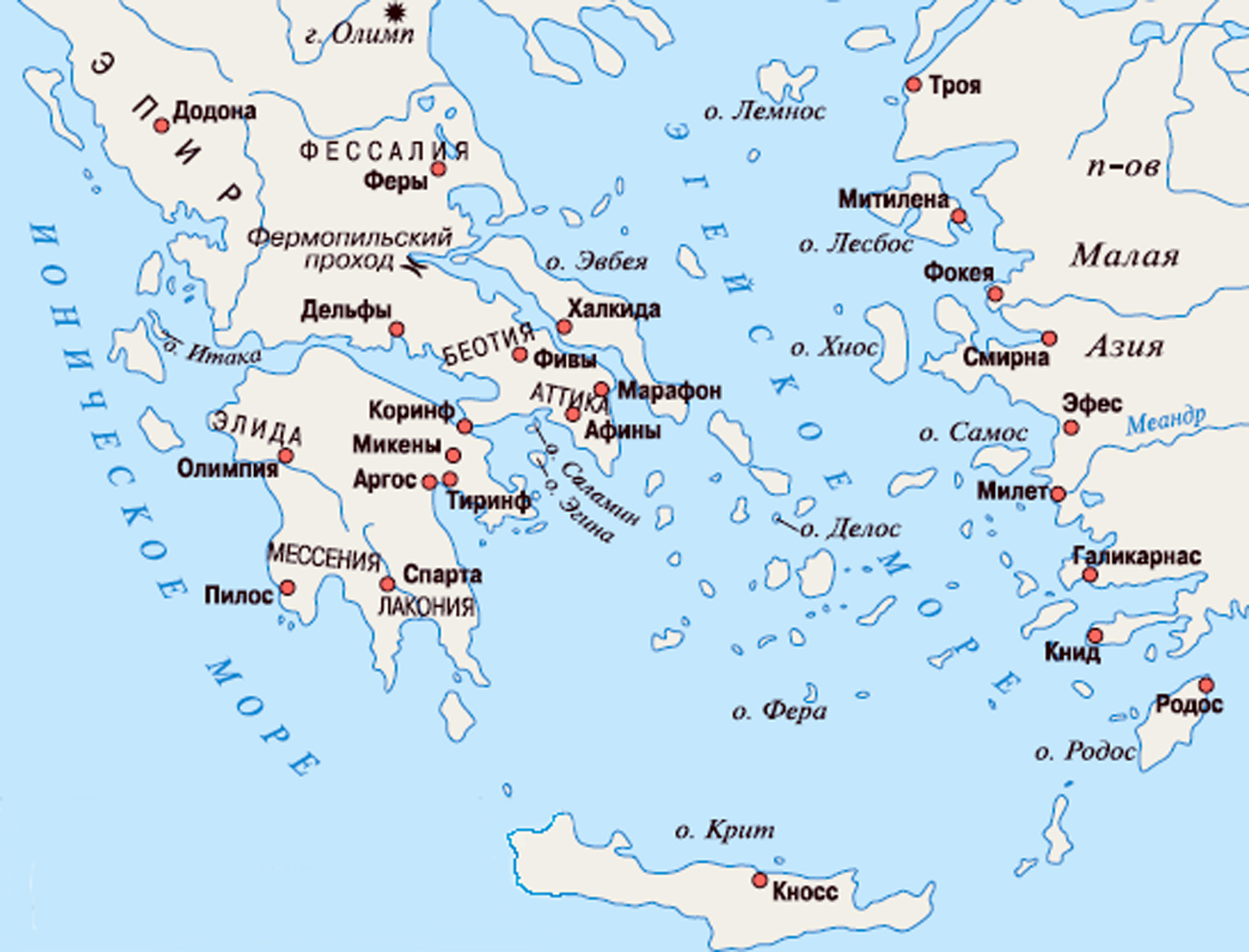 Древняя Греция занимала южную часть Балканского полуострова и окружающие его острова. Она делилась на три части: На полуострове Пелопоннес располагалась область Лакония с центром в Спарте. Население Древней Греции составляли родственные по языку и культуре племена. Позднее все древние греки называли себя одним общим именем — эллины, а свою родину — Элладой.
