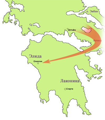 ![]() Греки относились к спорту как к священному действию, поскольку считали, что боги даровали человеку прекрасное тело и содержать его в красоте, силе и гармонии — святая обязанность. Выполняли эту обязанность с помощью спортивных состязаний. Главными среди них были Олимпийские игры — общегреческий спортивный и религиозный праздник. Олимпийские игры проводили в честь верховного бога Зевса в городе Олимпия в области Элида. По преданию, первые Олимпийские игры состоялись в 776 году до н. э., затем проводились один раз в четыре года. Гонцы оповещали население о времени состязаний. На этот период прекращались войны и устанавливался священный мир во всей Элладе. В Олимпию спешили участники игр и многочисленные зрители со всех уголков Средиземноморья. Сюда приезжали философы и поэты. Они проводили научные беседы, читали свои новые произведения.