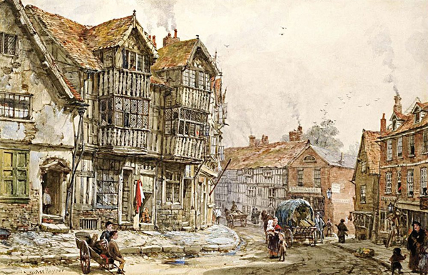 деревянные дома; нередко в целях экономии из дерева делали только каркас и заполняли его смешанными с глиной соломой или камышом, из них же делали крыши. Такой стиль назывался фахверк (каркасный). Более состоятельные люди строили дома из камня или кирпича с крытыми черепицей крышами.