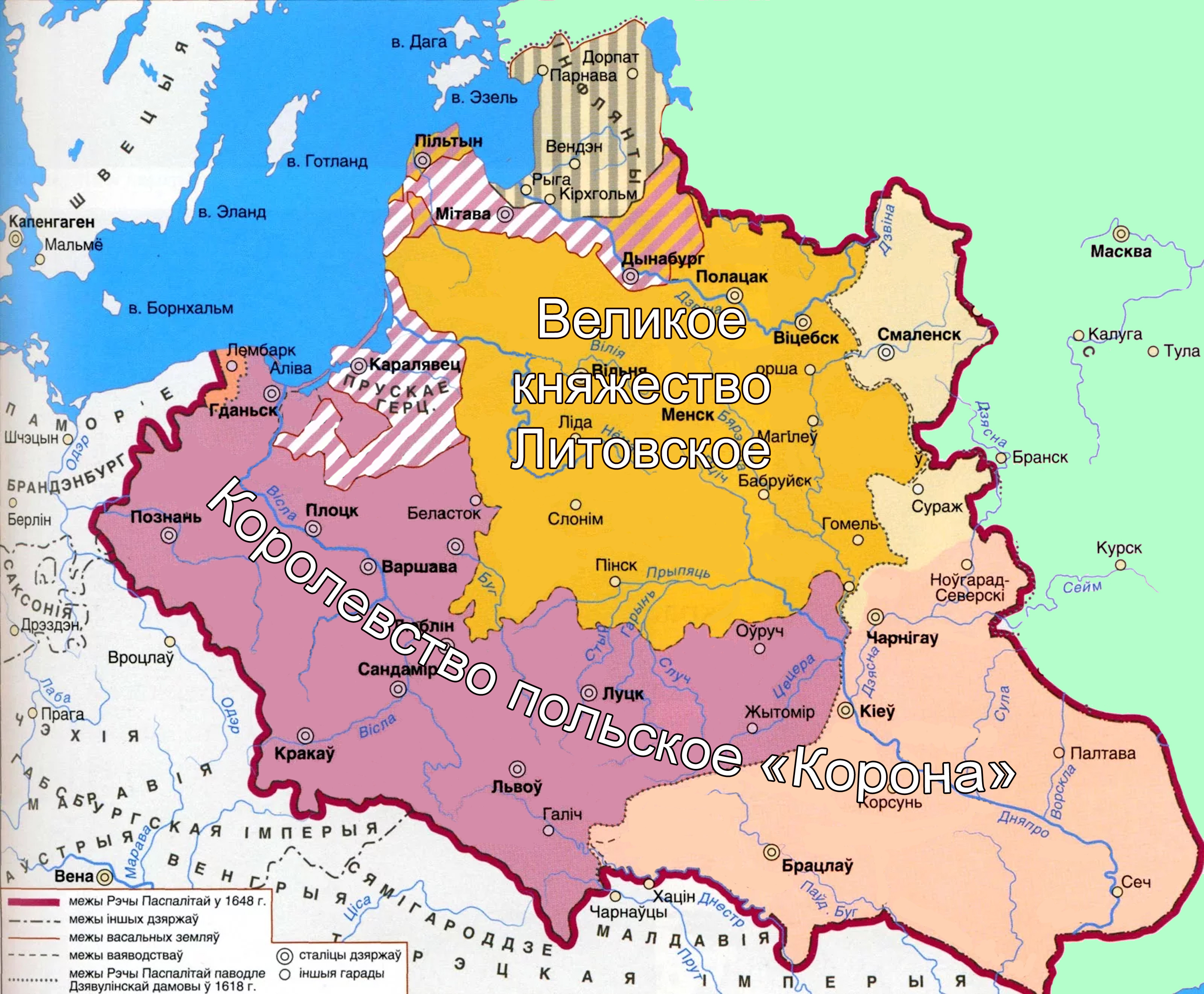 В начале XVII в. Речь Посполитая вмешалась во внутренние дела России, ослабленной внутренними смутами, однако в 1612 г. поляки были изгнаны из Москвы. Тем не менее по Деулинскому перемирию 1618 г. Речь Посполитая приобрела значительные русские территории, включая Смоленск.