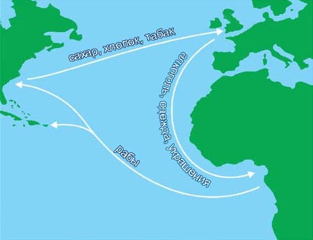 Транспортная революция оживила европейскую торговлю: довезти грузы до моря или до соседних стран стало проще и дешевле. И всё же до XIX в. настоящий выход в мир по-прежнему давали морские порты: нередко быстрее было доплыть до другого государства, чем добраться по бездорожью до отдалённых уголков своей собственной страны. Порты давали возможность расширять производство, находить новые рынки сбыта. Так возникало европейское разделение труда: страны уже не стремились обеспечить себя всем необходимым самостоятельно. Из Восточной Европы на кораблях везли зерно, древесину, лён, пеньку, Северная Европа экспортировала металлы. Англия вывозила ткани и промышленные товары. Нидерланды - занимались посреднической деятельностью и финансовыми услугами. Франция стала законодателем моды. Покупки иностранных товаров стали привычными. Покупались и продавались не только товары, но и ценные бумаги — акции, векселя (долговые расписки). Становились популярными биржи — места, где обменивались не только товарами, но и ценными бумагами. Сами товарызачастую на биржу не доставлялись, там лишь заключались сделки. Центром международных займов стал Амстердам. Биржи позволяли всё более свободно перемещать деньги и товары по Европе, помогали государствам и частным лицам получать кредиты. ![]() В XVIII в. расцвела также европейская заморская торговля: Европа наладила прочные контакты с Азией, Северной и Южной Америкой, побережьем Африки. Из-за океана ввозили так называемые колониальные товары — чай, кофе, сахар, пряности, хлопок, табак. Дешёвые индийские хлопчатобумажные ткани везли в Европу, Америку и даже в Африку. С XVII в. европейские страны начинают вести между собой торговые войны. По-прежнему процветала политика меркантилизма, основанная на убеждённости, что страна должна продавать как можно больше, а покупать как можно меньше, чтобы золото не уходило за рубеж. Возникло такое понятие, как «треугольная торговля»: из Великобритании и Франции корабли отправлялись к западному побережью Африки, там закупались рабы, продавались в Вест-Индии или на Американском континенте, затем суда загружались колониальными товарами и плыли обратно в Европу.