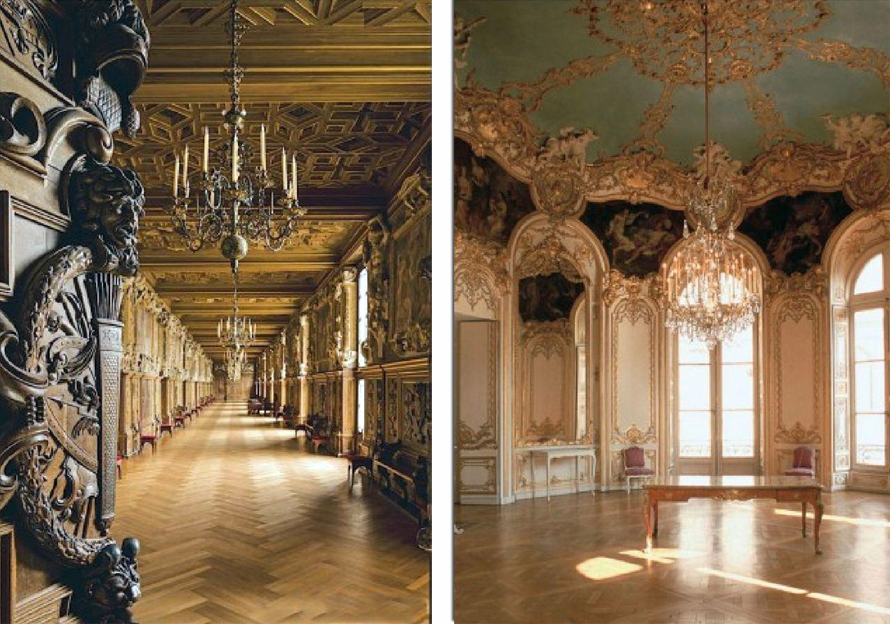 В XVIII в. сосуществовали несколько художественных стилей. В Южной Европе преобладало барокко. Соборы, церкви, дворцы отличались роскошным и пышным убранством. В первые десятилетия XVIII в. во Франции возникает стиль рококо. Для этого стиля характерны сложные, причудливые формы, узоры, напоминающие завитки раковин, использование зеркал в интерьерах. Стиль рококо был лишен характерной для барокко пышности и торжественности. ![]()