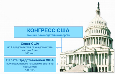 Экономика штатов была разорена войной. Казна пустовала. Не хватало серебряной монеты. Бумажные деньги быстро обесценивались, и в уплату налогов их не принимали. Многие собственники разорялись и становились должниками. Тюрьмы были заполнены должниками. В 1787 г. бывшие участники Войны за независимость подняли восстание под руководством Даниэля Шейса. 17 сентября 1787 г. на Конституционном Конвенте в г.Филадельфия выборными представителями штатов была принята Конституция США, которая с рядом последующих поправок действует до сих пор. ![]() В Конституции был реализован принцип разделения властей. Законодательной властью наделялся двухпалатный парламент (Конгресс). Нижняя палата — (Палата представителей) — избирались на 2 года пропорционально численности населения каждого штата. Верхняя палата (Сенат) - по два представителя от каждого штата, избираемые их законодательными органами на 6 лет. Исполнительная власть вручалась президенту, избираемому на 4 года путём двухступенчатых выборов: избиратели голосовали за выборщиков, выборщики — за президента. Президент являлся главнокомандующим вооружёнными силами, назначал членов правительства и мог на любой утверждённый Конгрессом законодательный акт наложить вето, преодолеть которое можно было только 2/3 голосов членов обеих палат. ![]()