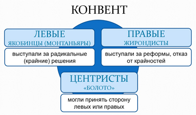 Вопросы для самоконтроля: 1. Какие группировки были представлены в Конвенте? Сравните их политические программы.