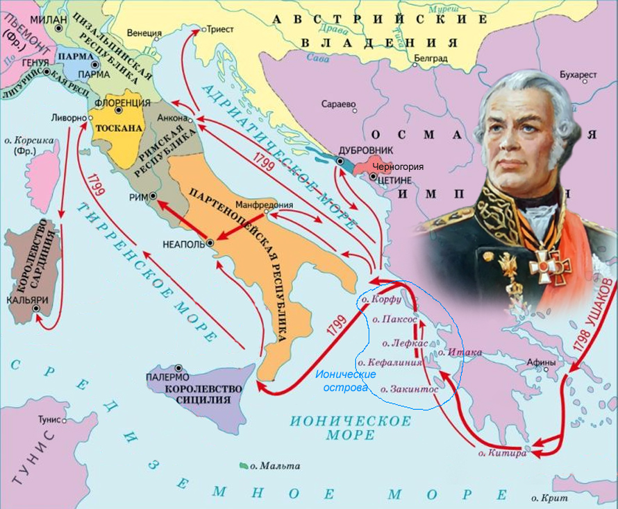 После распада Первой антифранцузской коалиции Франция ищет способ победить Великобританию. Высадить десант на побережье Англии невозможно (французский флот был слишком слаб). Тогда в 1798 г. армия Бонапарта отправляется на завоевание Египта (угроза английским владениям в Индии). Наполеон быстро установил контроль над Египтом, но англичане уничтожили французский флот и французская армия оказалась отрезана. Французы грабили захваченную страну в течение 1798—1801 гг. , проводя политику тотального террора. Возмущённая вероломством Франции, Османская империя (Египет был ее владением) заключила военный союз с Великобританией и Россией. К нем присоединились Австрия и Неаполитанское королевство. В 1799 г. русская эскадра адмирала Федора Ушакова вошла в Средиземное море и выбила французов с Ионических островов и Неаполя. ![]()