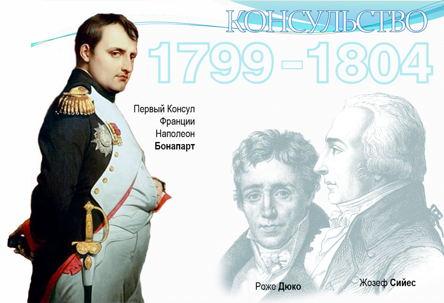 К 1799 г. в обществе нарастало стремление к установлению твёрдой власти, которую связывали с единственной реальной силой — армией. За изменение государственного строя стали выступать и «правые» и «левые», даже среди членов Директории появились сторонники государственного переворота, который принёс бы долгожданную стабильность. 18 брюмера VIII года республики (9 ноября 1799 г.) под предлогом раскрытого якобинского заговора Бонапарт был назначен командующим военными силами, расположенными в департаменте Сена. 19 брюмера Законодательный корпус принял решение передать власть трём временным консулам, одним из которых стал сам Бонапарт. Режим Директории пал. Революция 1789–1799 гг. окончилась. ![]()