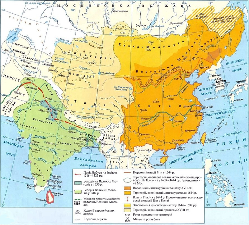 Золотой век династии Цин в Китае. ![]() Китайское государство - неограниченная монархия во главе с императором – богдыха́ном. Китай состоял из провинций, областей, округов и уездов. Во главе провинций находилcя наместник богдыхана, которому подчинялись военный и гражданский губернаторы. Высшие должности на местах занимали представители маньчжуров. Маньчжуры же составляли основу армии. Правление императора Канси́. В 1661 г. император Канси́ начал проводить курс реформ. Началось восстановление дамб, плотин, каналов, ирригационных систем и дорог. Всё это способствовало дальнейшему восстановлению экономики государства. Богдыхан являлся одним из самых образованных представителей своей эпохи. В Пекине действовали - школа русского языка и Российская духовная миссия.