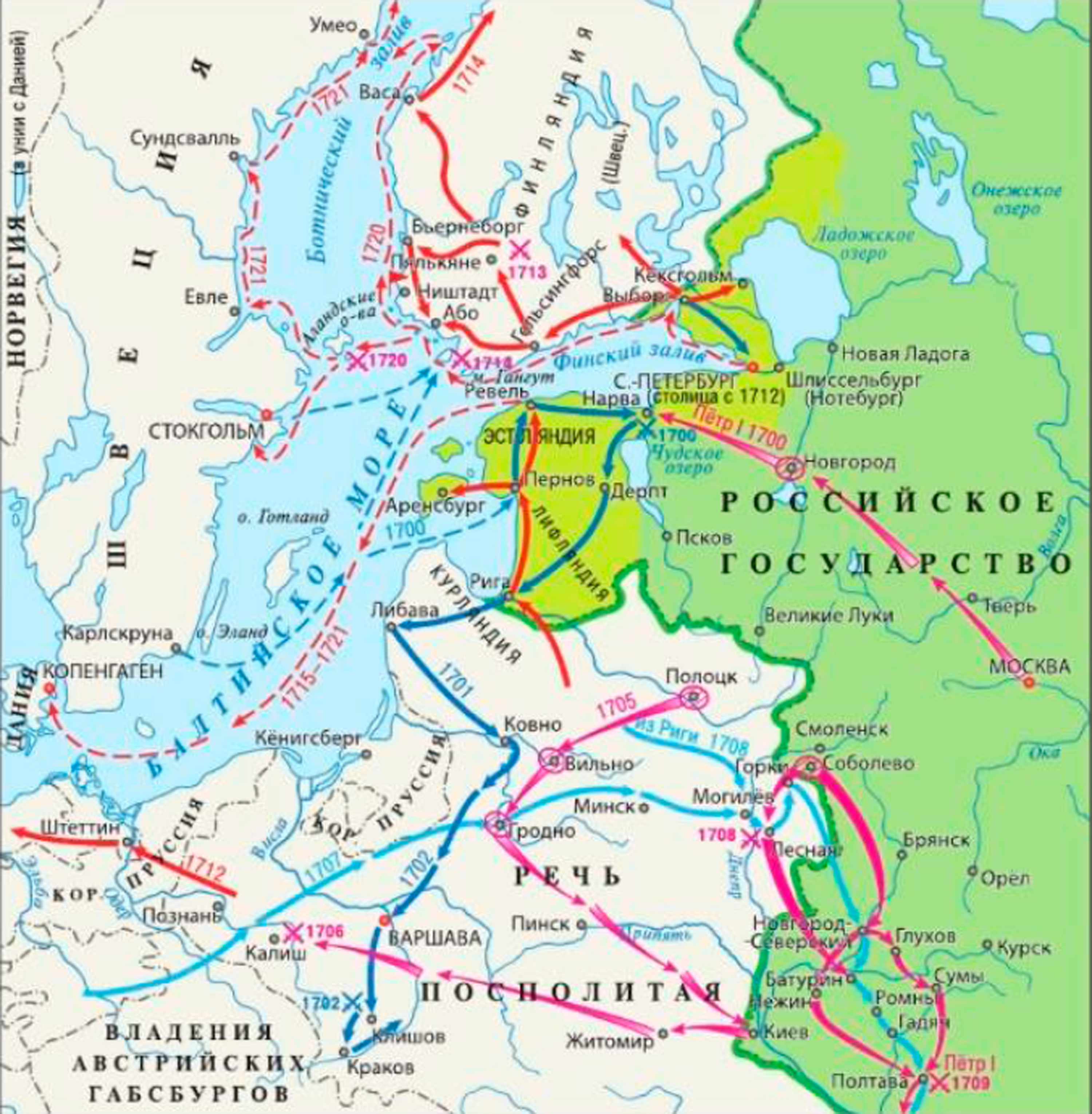 В 1716 г. царь принял «Устав воинский», и «Устав морской». Особое внимание Пётр уделял строительству военно-морского флота. Общее число построенных за период царствования кораблей составило около 900. В результате военных реформ Россия превратилась к одну из великих военных и морских держав Европы.