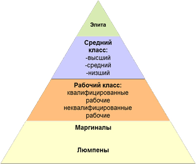 В XIX в. сословное деление исчезало. Теория, объяснявшее идущее на смену сословному общественное устройство, говорила о классах.. ![]() Класс — это большая группа людей, занимающих схожие позиции в экономической структуре общества. Для классов характерно неравенство, есть более высокие и низкие ступени, т. е. общество представляет собой нечто вроде пирамиды. Однако никаких законодательно установленных границ внутри этой мысленной пирамиды не существовало. Социальная мобильность людей существенно выросла. Многие выходцы из рабочего класса превращались в специалистов. Всё более схожим становилось политическое и правовое положение и условия жизни внутри того или иного класса. Множество людей, особенно с начала ХХ в., потребляло одну и ту же массовую типовую продукцию, вплоть до кино. Ряд мыслителей на рубеже веков заговорили о начинающемся «веке масс».